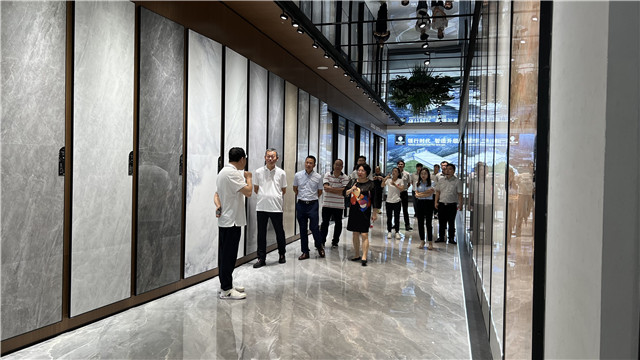 簡奢潮流藝術(shù)生活空間離不開高值磁磚產(chǎn)品,考察團一行近距離觀摩、觸摸羅馬利奧高顏值、高品質(zhì)產(chǎn)品。品種豐富、規(guī)格多樣、產(chǎn)品花色紋理與眾不同的產(chǎn)品,吸引考察團一行紛紛駐足細(xì)致觀察,為進(jìn)一度的深度合作打下良好基礎(chǔ)。