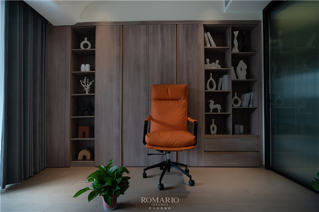 自然純粹的木紋磚搭配高端時尚的置物衣柜,于空間中形成靚麗的一隅,給臥室空間增添了簡奢典雅氣息。