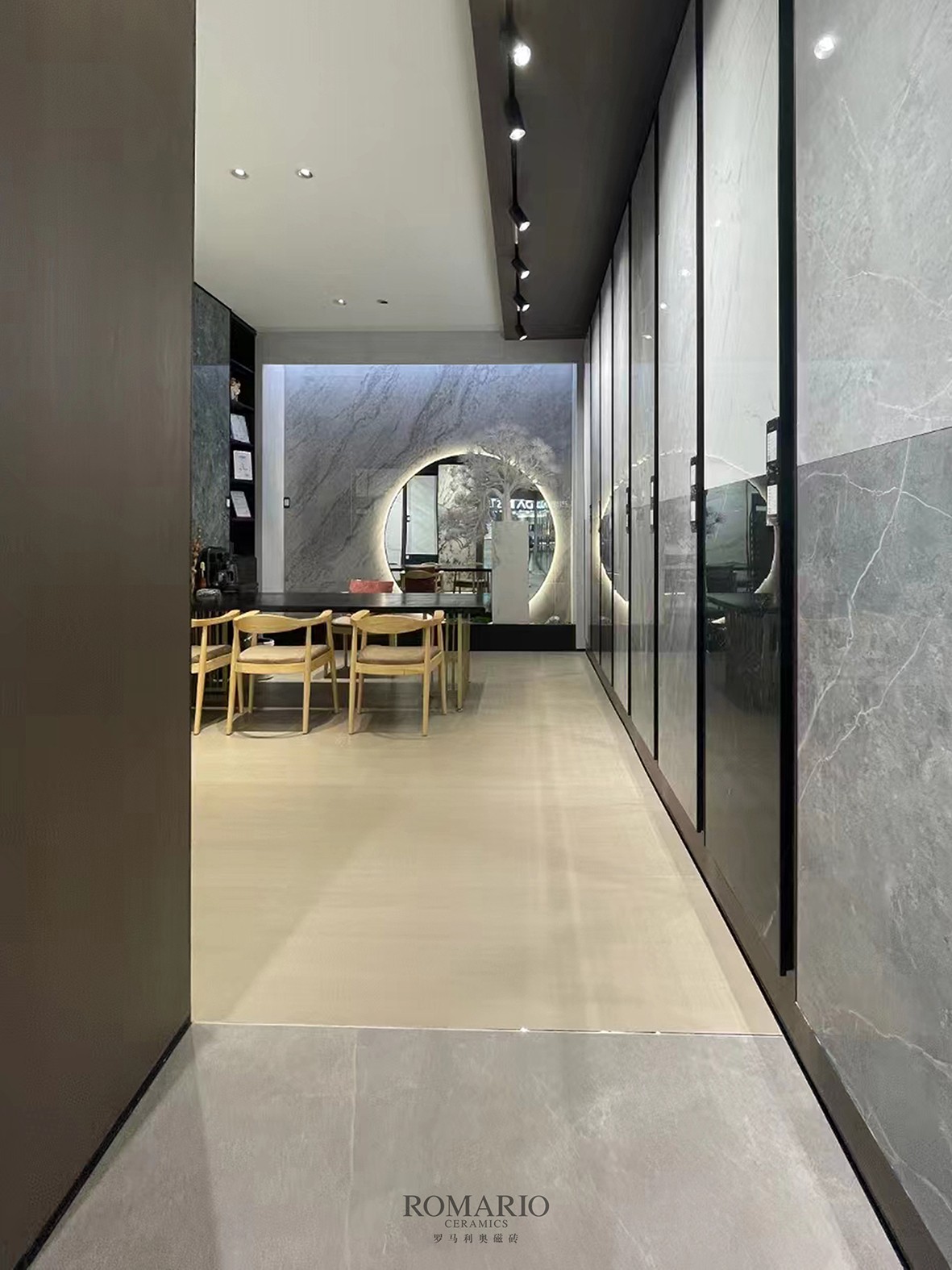 畢節羅馬利奧·磁磚藝術館容納了豐富的產品展示與購物體驗——首創圓弧式產品展示區,兼具傳統直立式素材展示區,聚合全品類、全規格、全色系等高質產品矩陣,營造高級精致的產品陳列方式,選購動線體驗全新升級。