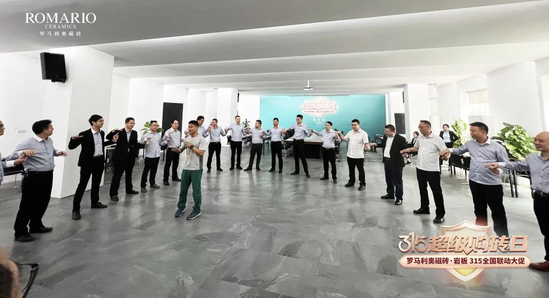 開年即開跑,決勝315!2023年2月23日,“315超級購磚日”羅馬利奧磁磚·巖板全國聯動大促盛大啟動!羅馬利奧全體營銷精英共同參與本次大會,全體精英們滿懷熱忱與豪情,對打贏開年第一場戰役信心滿滿。
