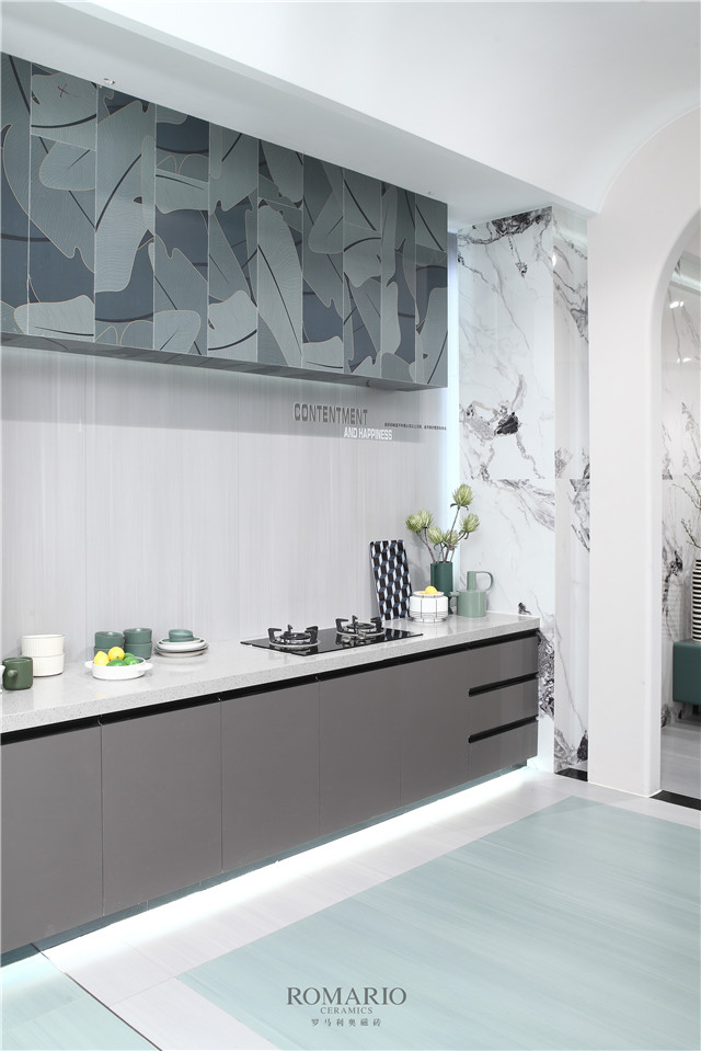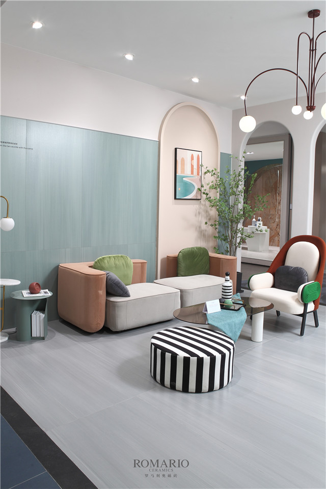 在本案展示的實景案例,羅馬利奧磁磚·巖板將現代簡約風與小清新風格相互融合,著重選用清新的裝飾、簡約的布局、簡單的色彩,通過以少勝多,以簡勝繁的現代設計語言,為當下年輕人打造自然、休閑、淡雅的小清新家居。